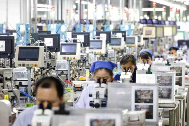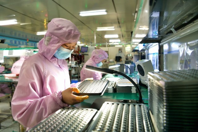 6月24日,正在江苏宿迁泗洪经济开辟区庆邦电子元器件(泗洪)无限公司车间内,工人加紧赶制出口的电子订单产物。发(许昌亮摄)海关总署副署长王令浚说,“上半年,我国石化、纺织等机械设备进口增速都达到了两位数,原油、金属矿砂等主要原材料的进口量添加。”